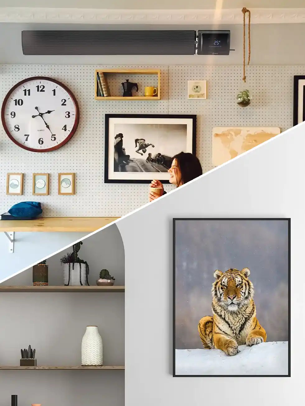 Slim, energy-efficient infrared panels designed to deliver comfortable radiant warmth while keeping walls clean and uncluttered. Ideal for living rooms, bedrooms, offices, and modern interiors.